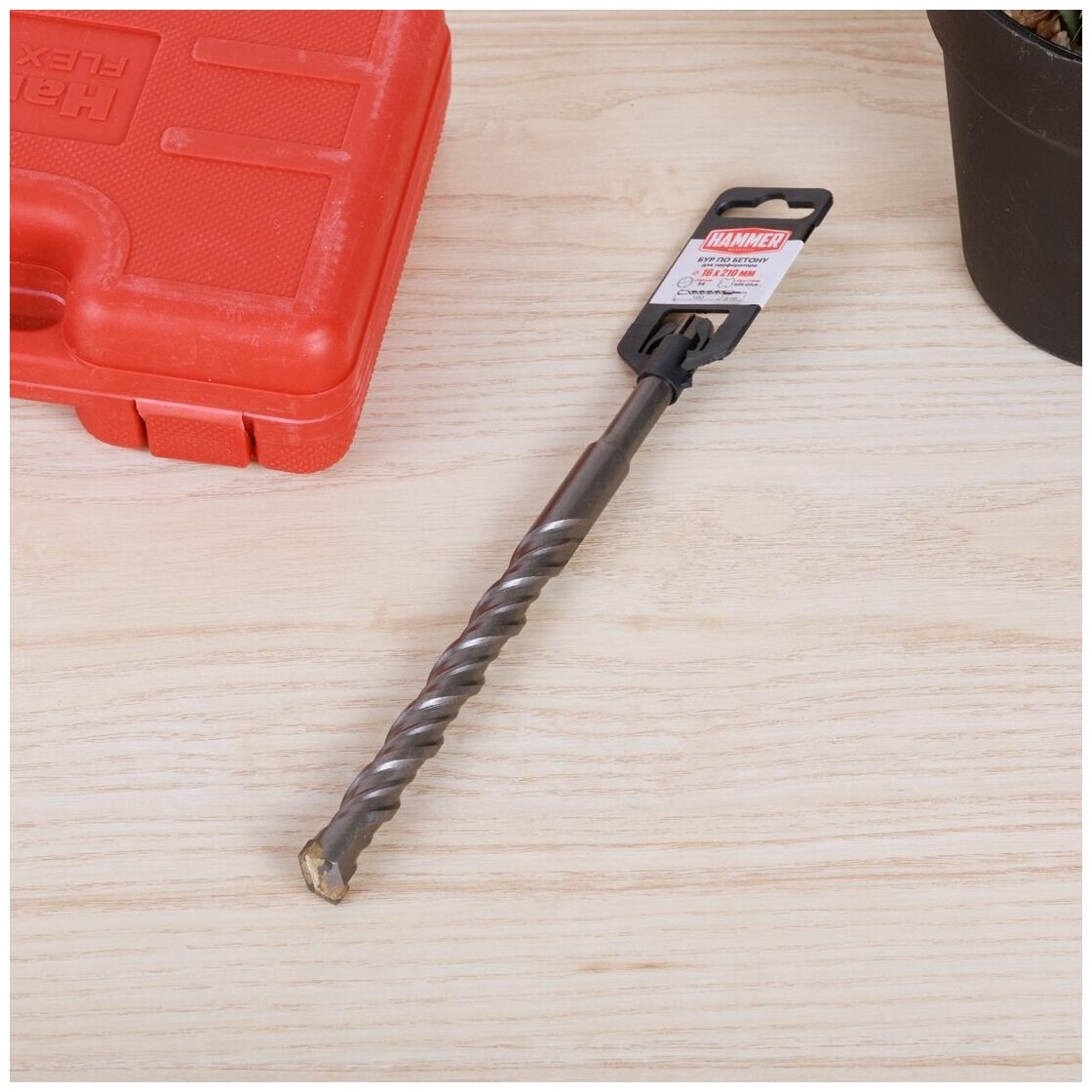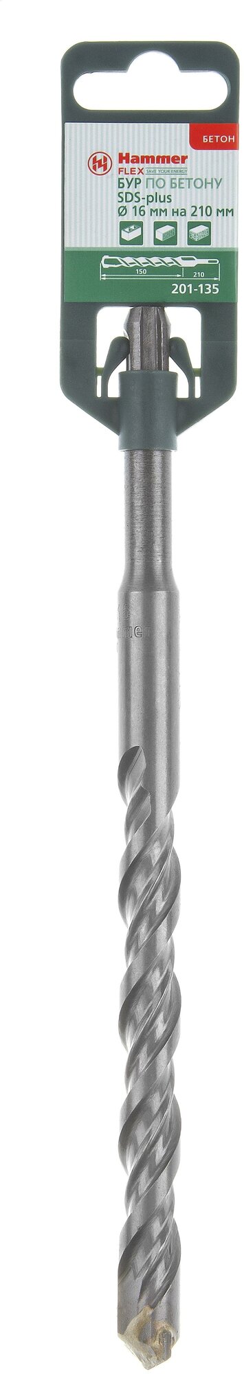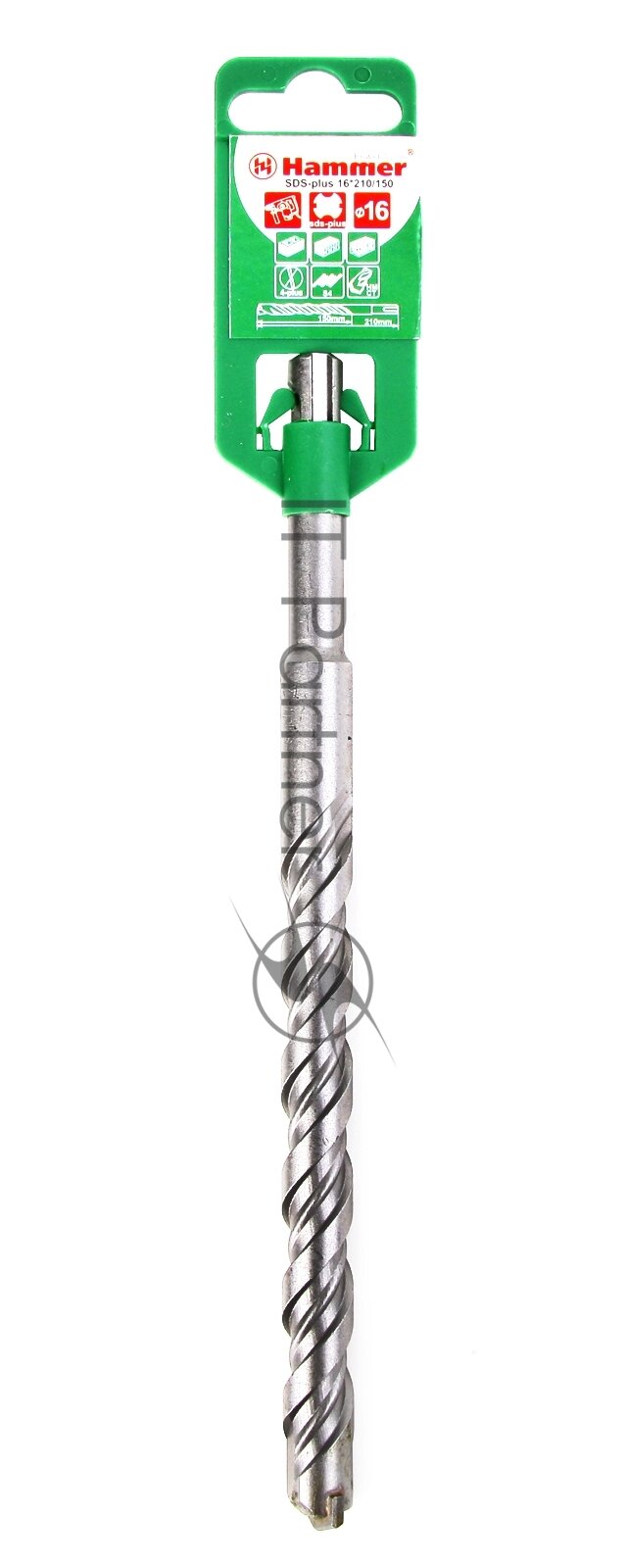 Бур Hammer Flex SDS+ 16х150/210ммПредназначены для сверления отверстий в бетоне, кирпичной кладке, искусственном и природном камне. — Твердосплавная напайка из твёрдого вольфрамокобальтового сплава BK8 обеспечивает высокий ресурс; — Двухканальная спираль обеспечивает легкий отвод стружки и низкий нагрев бура; — Изготовлен из высококачественной коррозионностойкой инструментальной стали — выдержит даже ударные нагрузки; — Использование смазки для буров позволяет снизить коэффициент трения и защитить бур от перегрева.