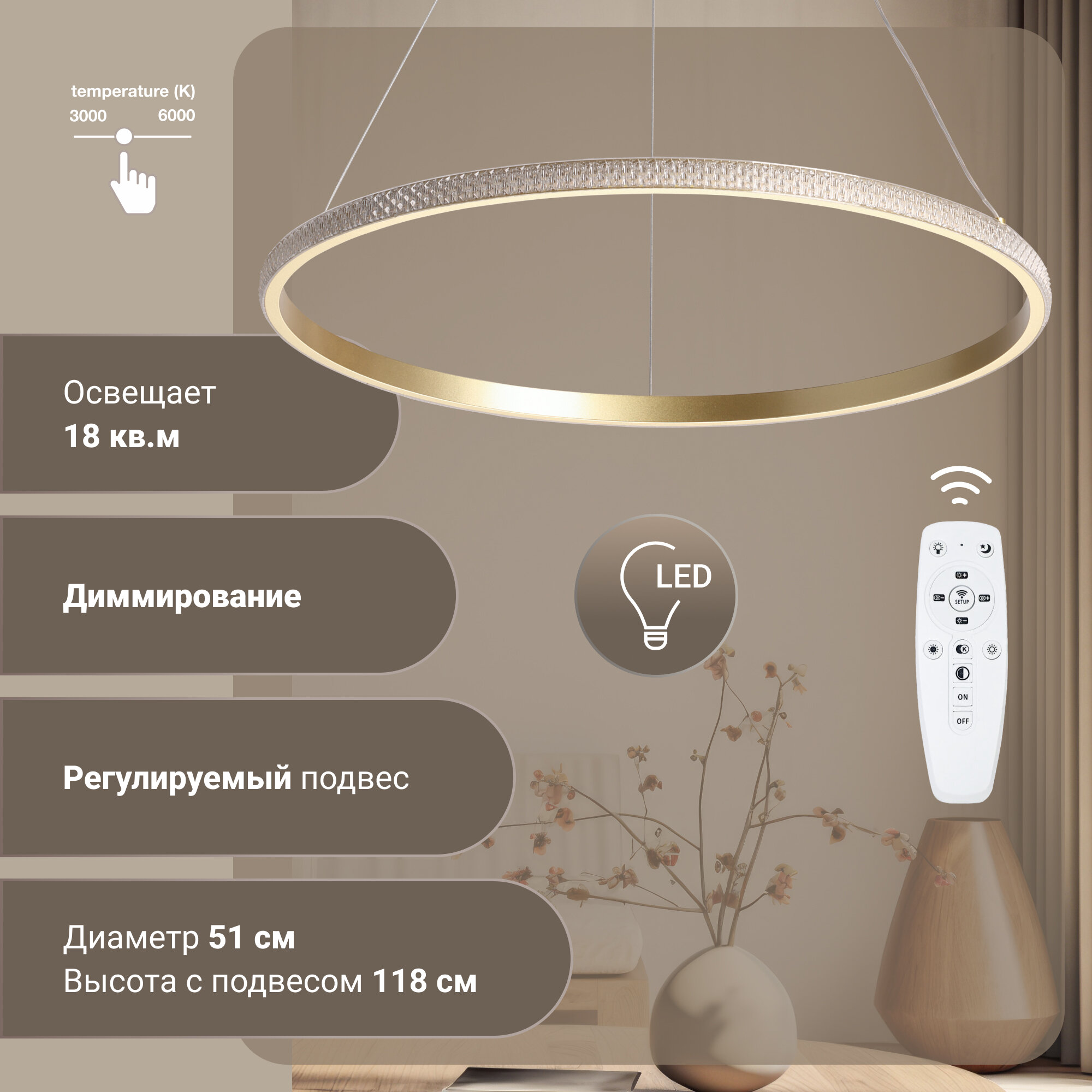 Подвесной светильник De City "Оскар" - это современное и стильное решение для освещения вашего дома. Он выполнен в золотом цвете, что делает его изысканным дополнением к любому интерьеру.Светильник оснащен 50-ваттным светодиодным источником света, который обеспечивает достаточное освещение помещения площадью до 18 м2. Благодаря этому, вы сможете создать комфортные условия для отдыха или работы.Управление светильником осуществляется с помощью пульта ДУ, что обеспечивает удобство в эксплуатации. Вы сможете легко регулировать яркость света, создавая атмосферу уюта и комфорта в вашем доме.Светильник имеет степень пылевлагозащиты IP20, что гарантирует его долговечность и надежность.Светильник De City "Оскар" выполнен в стиле лофт, минимализм, современный и хай-тек, что позволяет ему гармонично вписаться в любой интерьер.Светильник имеет размеры 51х51х118 см и весит 1,2 кг, что делает его легким и удобным для установки. В комплекте с светильником идут все необходимые крепления а светодиоды уже встроенные в корпус.Выбирая подвесной светильник De City "Оскар", вы получаете надежный, энергоэффективный и стильный источник света для вашего дома.