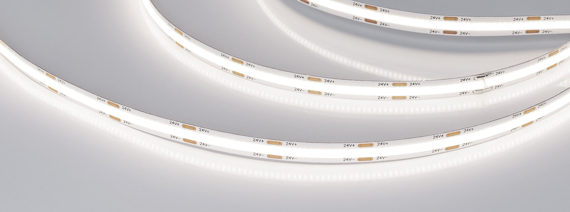 Светодиодная лента сплошного свечения COB серии X544. Светодиоды CSP, 544 шт/м, белая плата шириной 8 мм, скотч 3M. Цвет ДНЕВНОЙ 4000K, индекс цветопередачи CRI>90, угол 170°. Питание 24 В, мощность 11.5 Вт/м (57.5 Вт на 5 м). Размеры 5000x8x1.6 мм. Мин. отрезок 29.41 мм. Цена за 1 м. Обязательна установка на профиль.