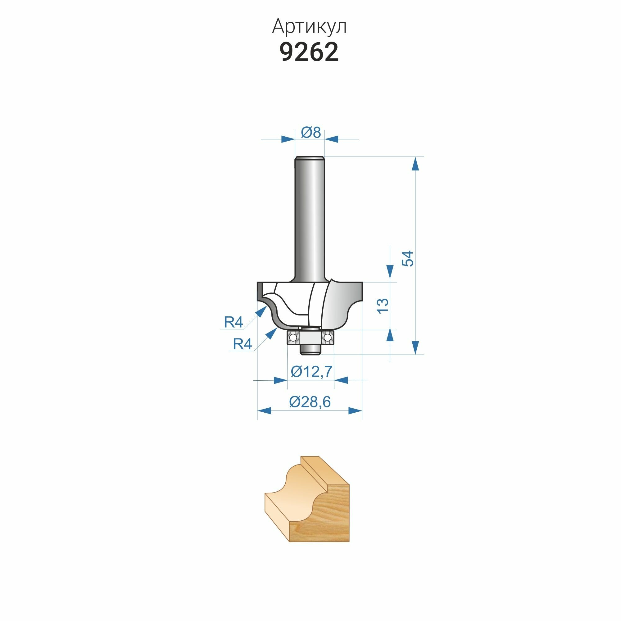 Фреза Энкор предназначена для закругления кромки детали. Используется при обработке столярных изделий, мебели и предметов интерьера в различных стилях, а также при реставрационных работах. В комбинации с подходящей галтельной фрезой возможно создать плотное соединение досок. Упорный подшипник дает возможность применять фрезу как по прямолинейным, так и по криволинейным кромкам детали без дополнительного оборудования. Фреза изготавливается из высококачественных материалов и характеризуется точно рассчитанной геометрией режущей кромки, обработанной алмазными дисками до точности биения 0.02 мм. Структура твердого сплава гарантирует его высокую стойкость к выщерблению по режущей кромке и, следовательно, качество обработки изделия.Параметры:Диаметр фрезы (D) 28.6 мм;Диаметр подшипника (D) 12.7 мм;Диаметр хвостовика (d) 8 мм;Радиус (R) 4 мм;Рабочая высота (Н) 13 мм;Общая длина (L) 54 мм;Тип кромочная калевочная.