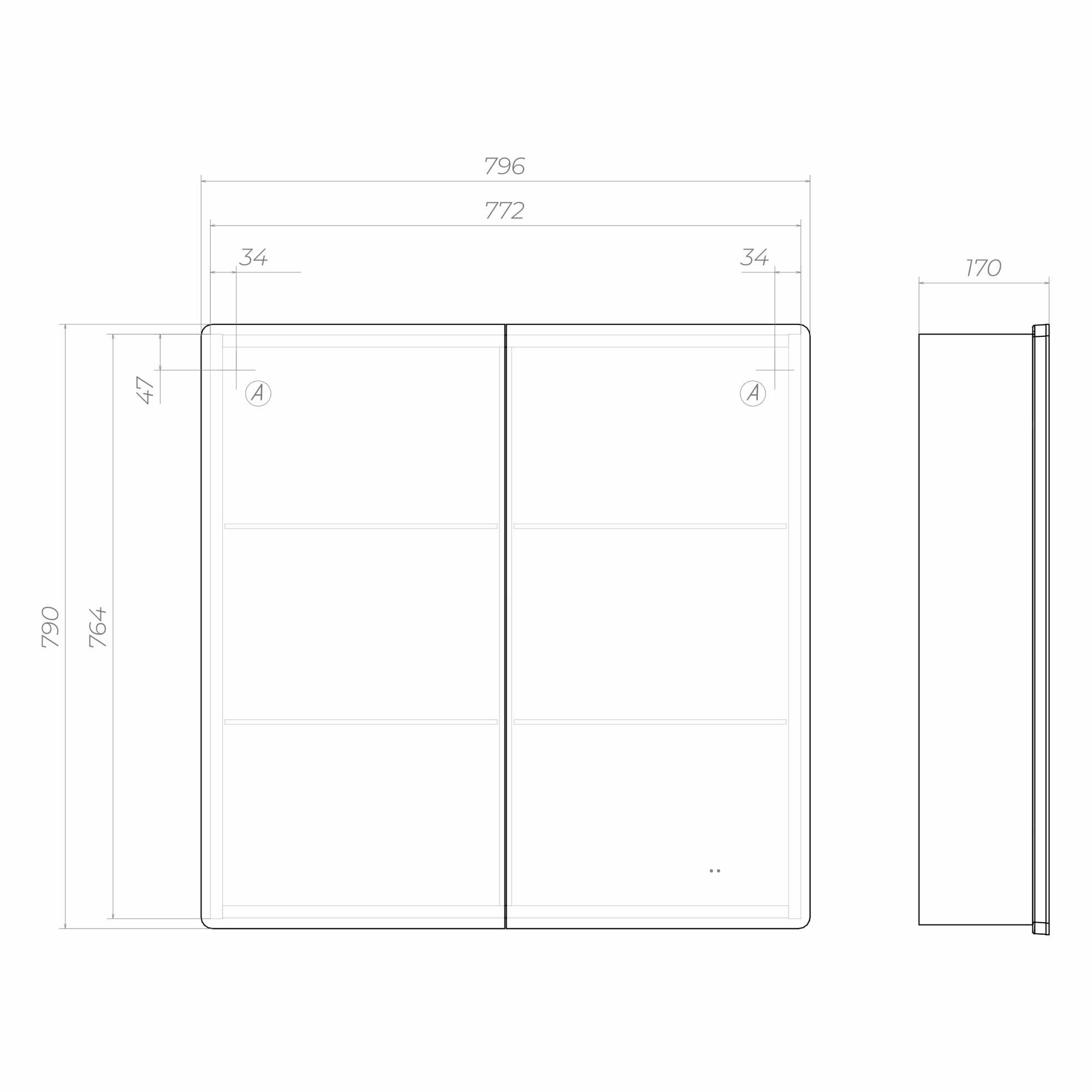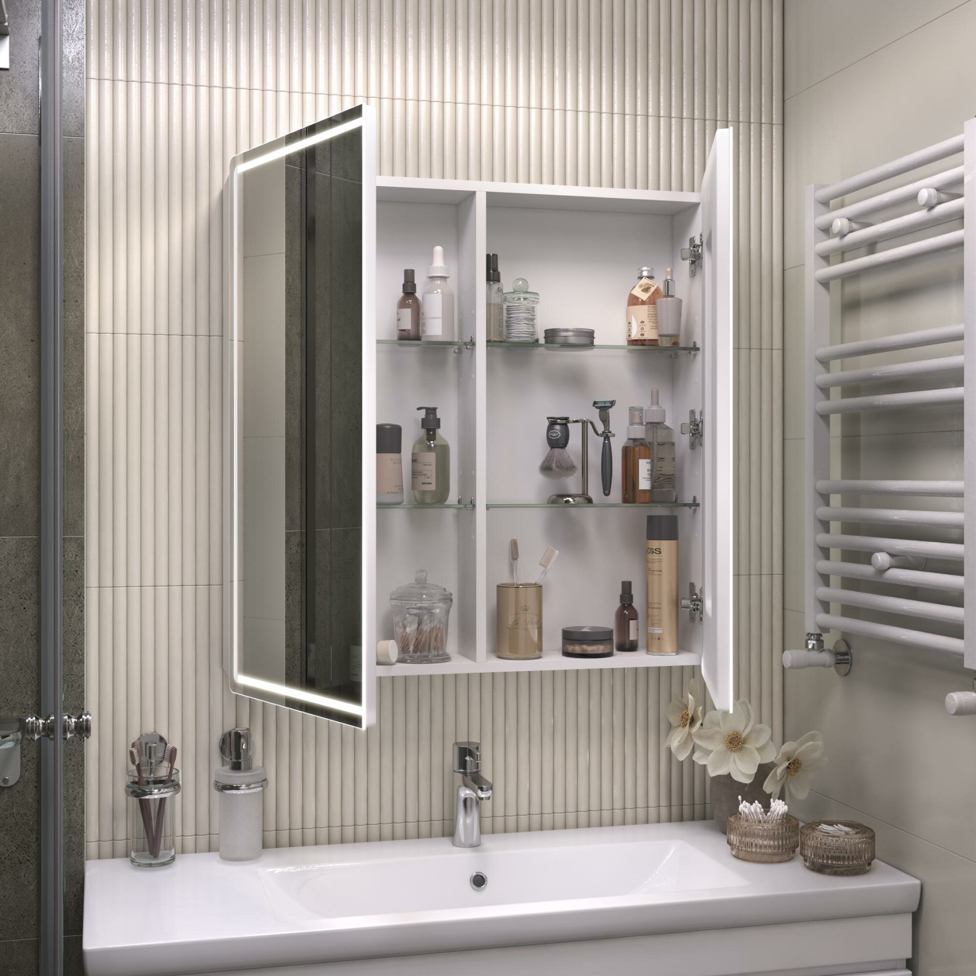 Зеркало-шкаф Vigo Geometry Comfort 80 с LED подсветкой бесконтактное включение (на взмах) функция антизапотевания 221
