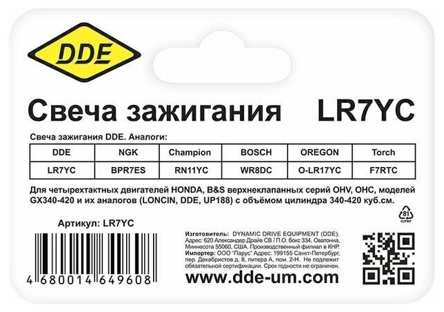 Сервис сравнения цен СкидкаГИД предлагает сравнить цены на товар «Свеча зажигания DDE Lr7yc»