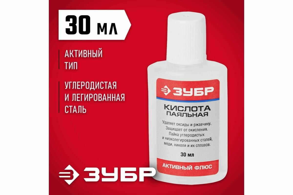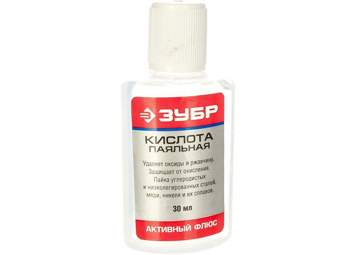 Флюс паяльный Зубр - уникальное средство для облегчения процесса пайки на медных, железных и латунных поверхностях. Благодаря своей формуле, он обеспечивает высокую надежность соединения и защиту от окисления.