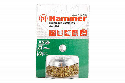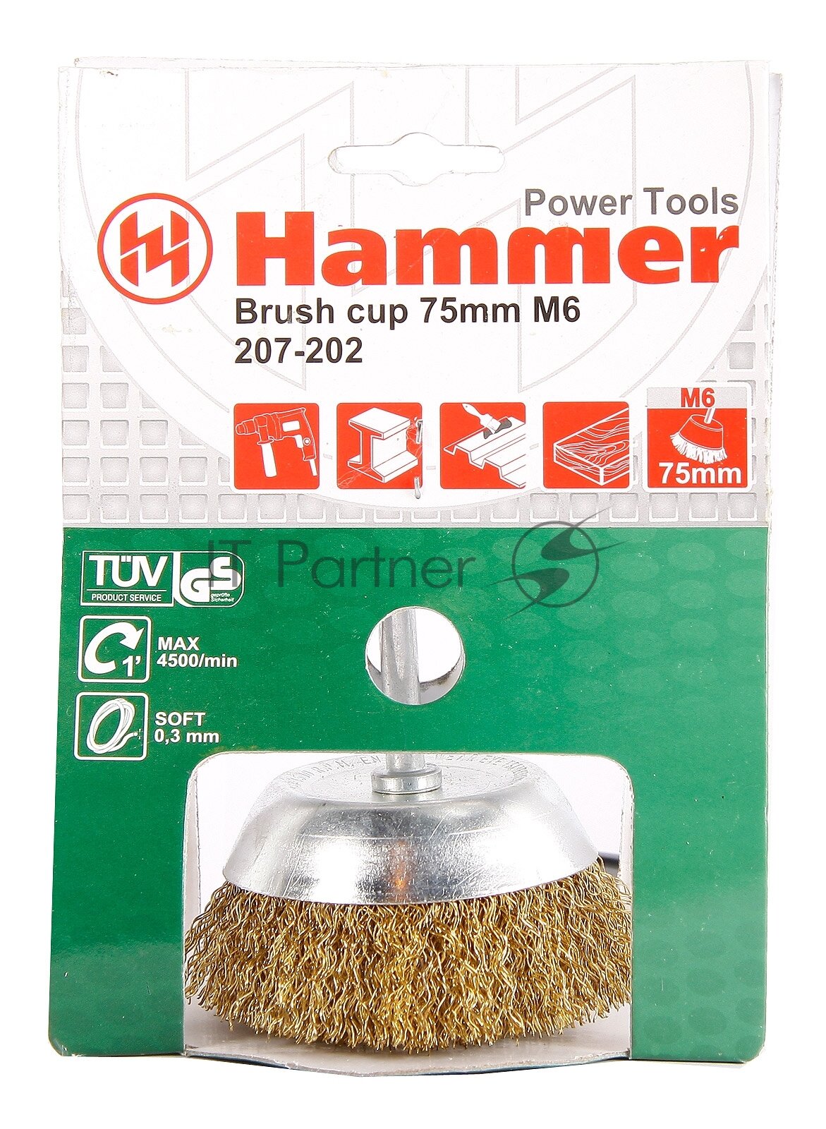 Кордщетка Hammer Flex 207-202 75мм d6 чашеобразная гофрированная мягкая, с хвостовиком