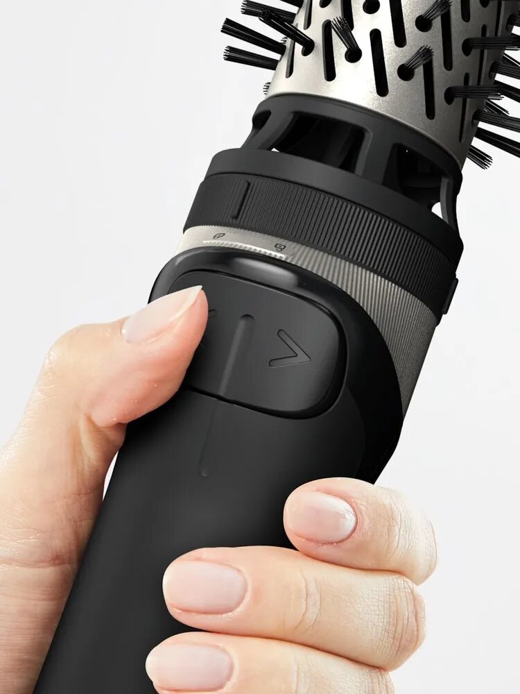 Автоматическое вращение. Автоматическая вращающаяся щётка повторяет движения стилиста при профессиональной укладке и одновременно высушивает волосы. Насадки для волос любой длины. Две керамические насадки: вращающаяся щётка диаметром 50 мм для длинных / густых волос; вращающаяся щётка диаметром 40 мм для средних и коротких волос и чёлки. Идеальная укладка. Керамическое покрытие позволяет щётке легко скользить по волосам, делая их более мягкими, блестящими и послушными. Точность настроек. Настройки скорости и температуры 0-1-2. Режим подачи холодного воздуха для фиксации укладки по завершении сушки. Долгий срок службы. Защитные чехлы для удобного хранения насадок после использования позволяют продлить их срок службы.