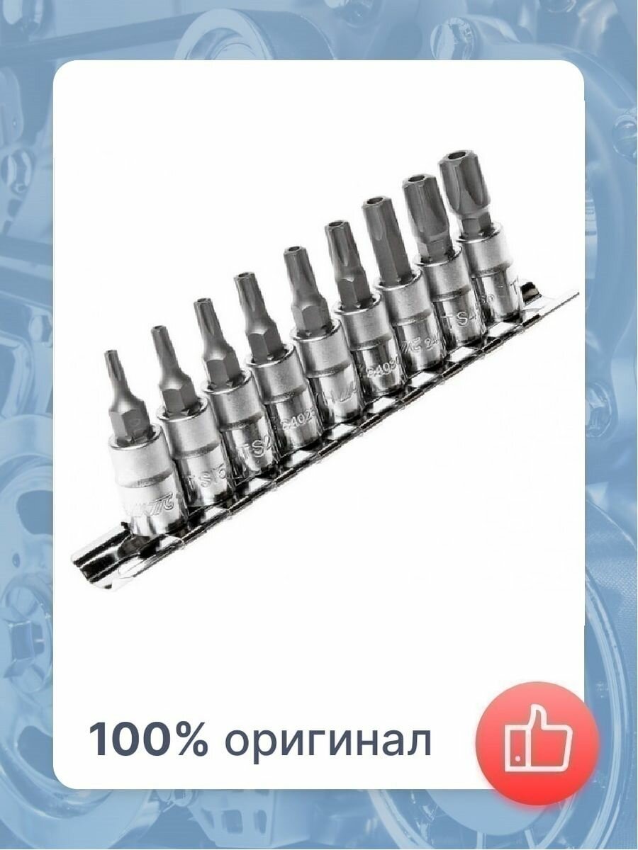 Набор насадок JTC-H409T TORX 5-гранных предназначен для болтов нового типа с пятигранной головкой. Применяется для насосов топливной системы автомобилей Mercedes-Benz, электронной системы управления устойчивостью грузового автомобиля, противоугонной системы EWS3 на автомобилях Rover75 и MG ZT.
