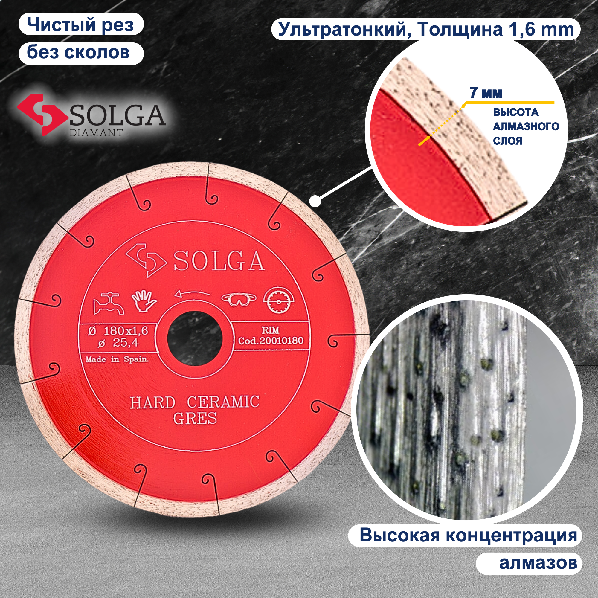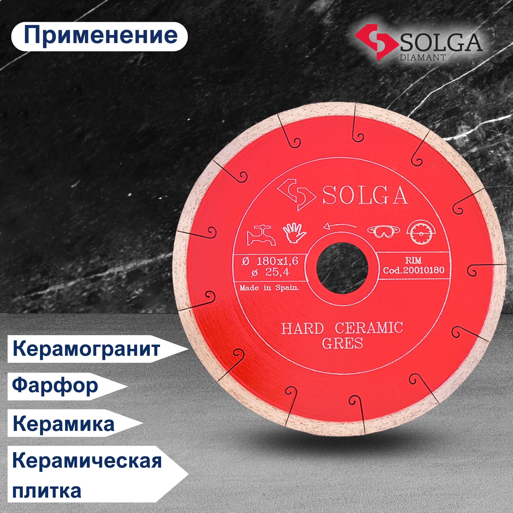 - Диск алмазный Solga Diamant HARD CERAMICS сплошной керамогранит 180мм25,4
