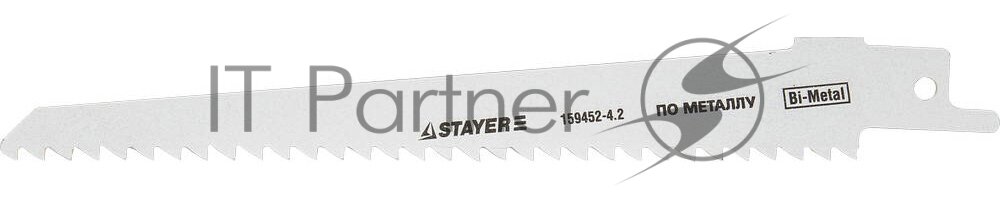 Бренд: Stayer; Модель: S611DF; Тип: полотно для сабельной пилы; Назначение: дерево; Количество в упаковке: 1 шт.; Размеры: 220 x 3 x 53 мм мм; Особенности: быстрое пиление; Прочие характеристики и свойства: Полотно STAYER 159452-4.2 является расходным материалом для сабельных электроножовок и используется для пиления дерева, дерева с гвоздями, металла, пластика, газобетона. Представляет собой узкую биметаллическую ленту с острыми зубьями. Обеспечивает быстрый качественный рез и имеет длительный срок эксплуатации. Тип полотна - S611DF.