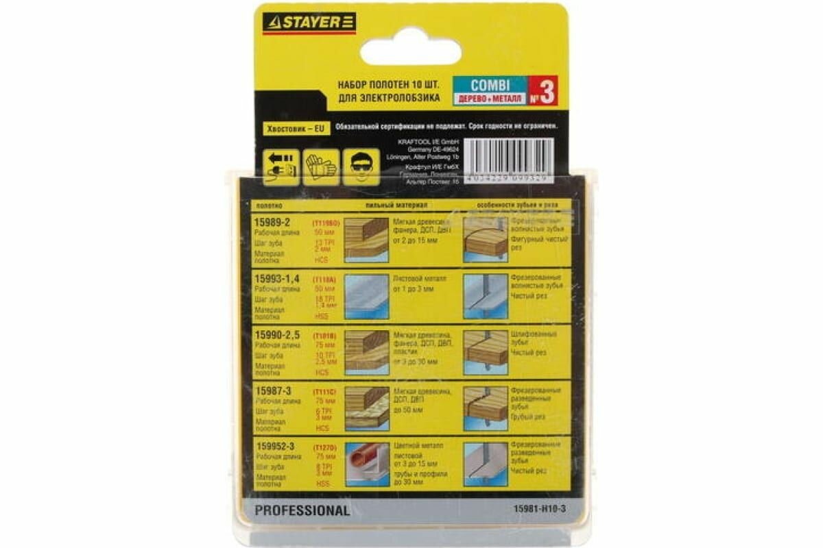 Набор пилок для лобзика Stayer 15981-H10-3 - это профессиональный инструмент, который обеспечивает высокую точность и скорость работы. В наборе представлены пилки различных типов, что позволяет обрабатывать различные материалы: металл, дерево и пластик.