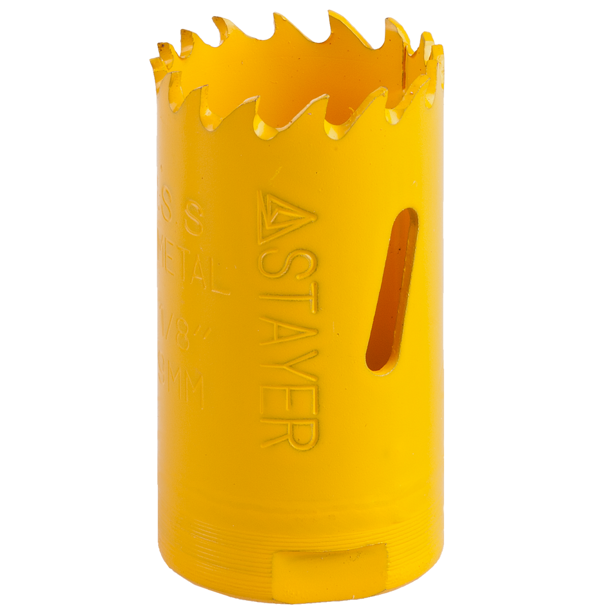 Инструмент Stayer гарантирует высокое качество и точность выполняемых работ. Максимальная производительность и высокий рабочий ресурс достигаются благодаря зубьям, изготовленным из быстрорежущей стали с 5% содержанием кобальта. Особая заточка режущих зубьев усиливает захват материала и обеспечивает оптимальный отвод продуктов пиления. Переменный шаг зубьев способствует более быстрому выбросу стружки и уменьшает вероятность «подклинивания» коронки. Глубина пиления 38 мм. Применяется на дрелях, перфораторах и стационарных станках в безударном режиме при сверлении металла, дерева, ДСП, гипсокартона, алюминия и твердых пластмасс.