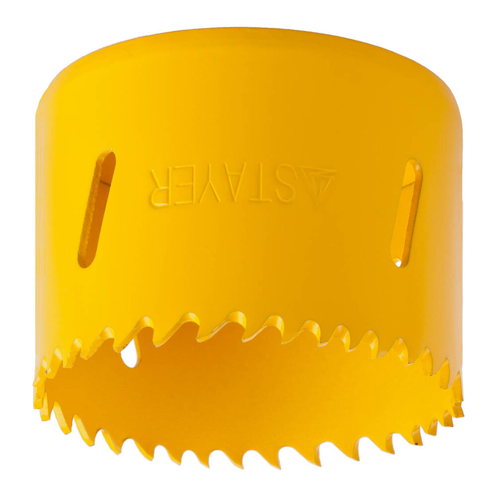 Инструмент Stayer гарантирует высокое качество и точность выполняемых работ. Максимальная производительность и высокий рабочий ресурс достигаются благодаря зубьям, изготовленным из быстрорежущей стали с 5% содержанием кобальта. Особая заточка режущих зубьев усиливает захват материала и обеспечивает оптимальный отвод продуктов пиления. Переменный шаг зубьев способствует более быстрому выбросу стружки и уменьшает вероятность «подклинивания» коронки. Глубина пиления 38 мм. Применяется на дрелях, перфораторах и стационарных станках в безударном режиме при сверлении металла, дерева, ДСП, гипсокартона, алюминия и твердых пластмасс.