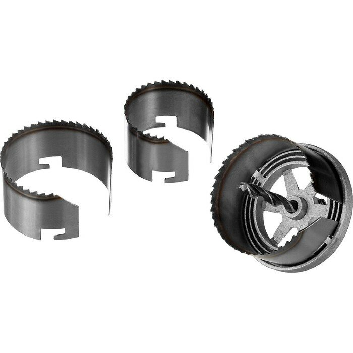 Пила кольцевая наборная по дереву – сменная насадка для электродрели, используемая в режиме безударного сверления для выпиливания отверстий в дереве, ДСП, фанере, пластике, гипсокартоне. Применение кольцевой наборной пилы позволяет легко осуществить монтаж распределительных коробок, электророзеток и т.п. Данная модель имеет разведенные закаленные зубья с постоянным шагом, боковую прорезь для быстрого удаления опилок, центровочное сверло для удобной и точной работы., Диаметры, входящие в набор