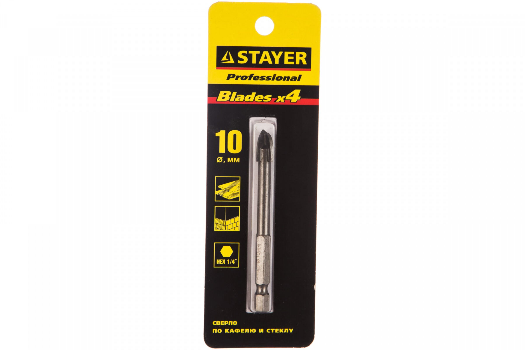 Диаметр: 10 мм Тип резца: 4-х резцовый Хвостовик: Шестигранный с проточкой хвостовика 1/4" Длина сверла: 85 мм Сверла по кафелю и стеклу STAYER серии PROFESSIONAL - надежный и проверенный инструмент высокого качества. Сверла предназначены для сверления отверстий в стекле, керамической и кафельной плитке.