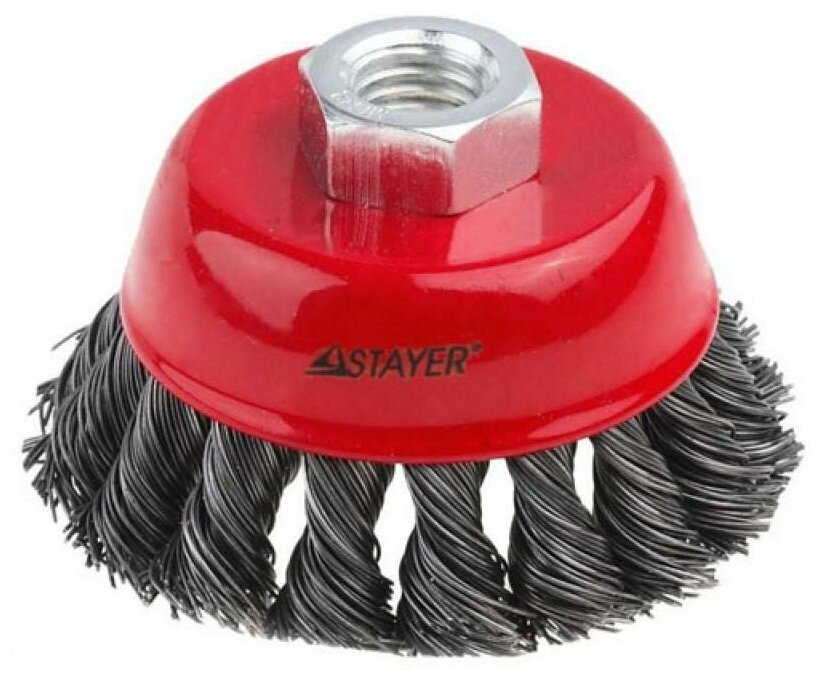 Чашечная щетка STAYER используется совместно с угловыми шлифовальными машинами для матирования, шлифовки, полирования, удаления заусенцев и коррозии. Щетка прошла обязательный контроль качества.
