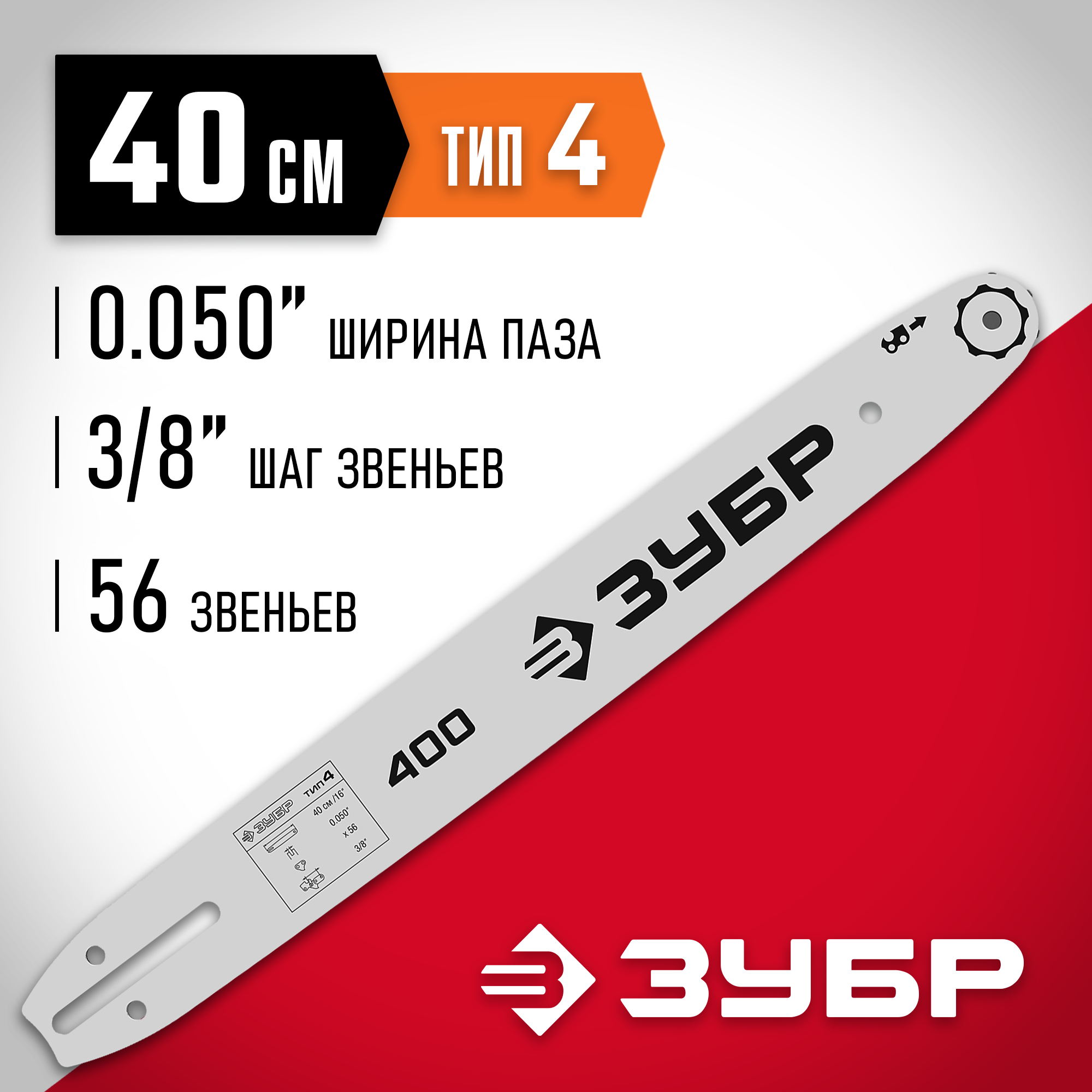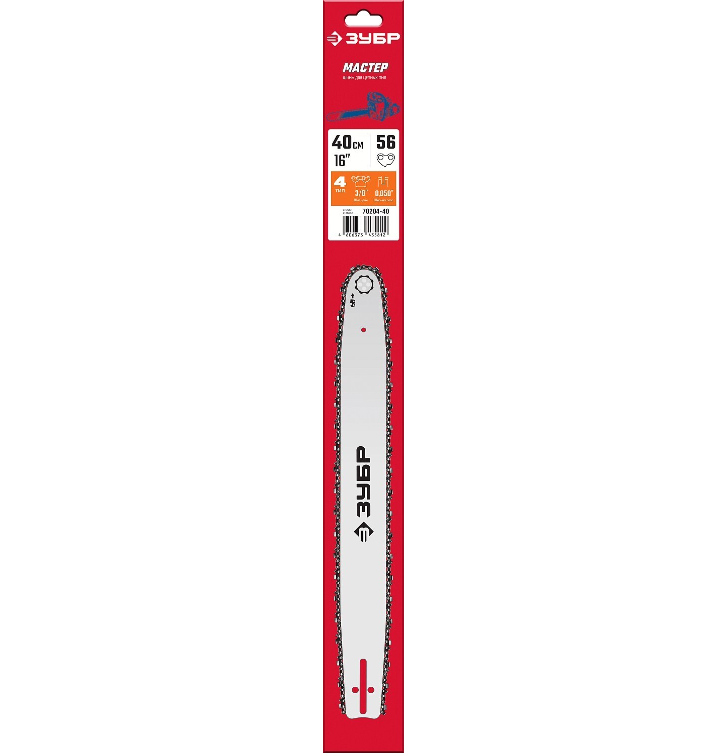 Шина для электро и бензопил Зубр тип 4 шаг 3/8" паз 1.3 мм 45 см 70204-45