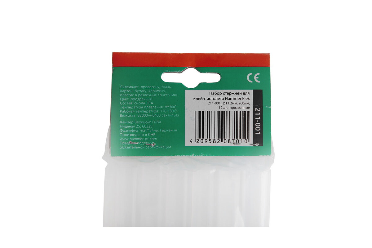 | Название на английском | Hot melt glue sticks Hammer Flex 211-001 11.2 mm 200mm 12pcs transparent |
