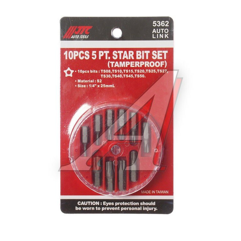 Набор бит JTC- это профессиональный и крепкий инструмент который применяется в мастерских и предприятиях там, где инструмент используется каждый день при высоких нагрузках. Изготавливается в Тайване. Имеет международные сертификаты качества.