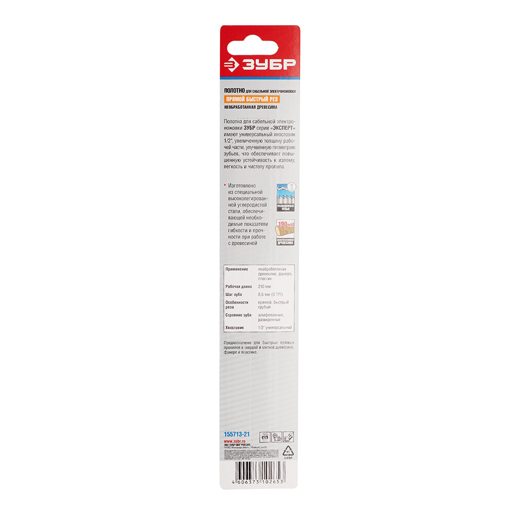 Полотно Зубр ЭКСПЕРТ , 155713-21, для сабельн эл. ножовки Cr-V, быстрый, грубый распил тверд и мягкой древесины, 210/8,5мм