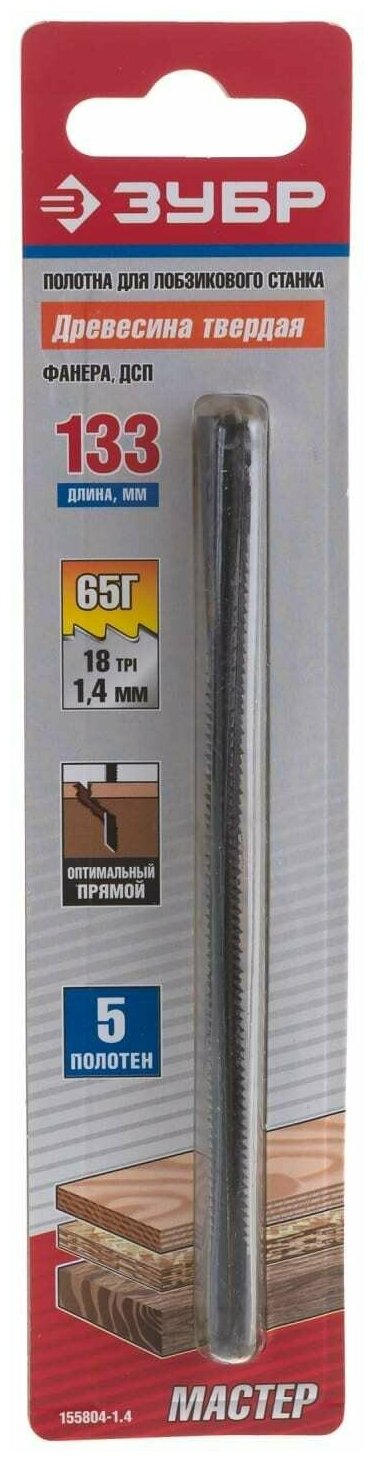 | Наименование модели | полотно для лобзик станка ЗСЛ-90 и ЗСЛ-250, по тверд древисине, сталь 65Г, L=133мм, шаг зуба 1,4мм (18 TPI), 5шт |