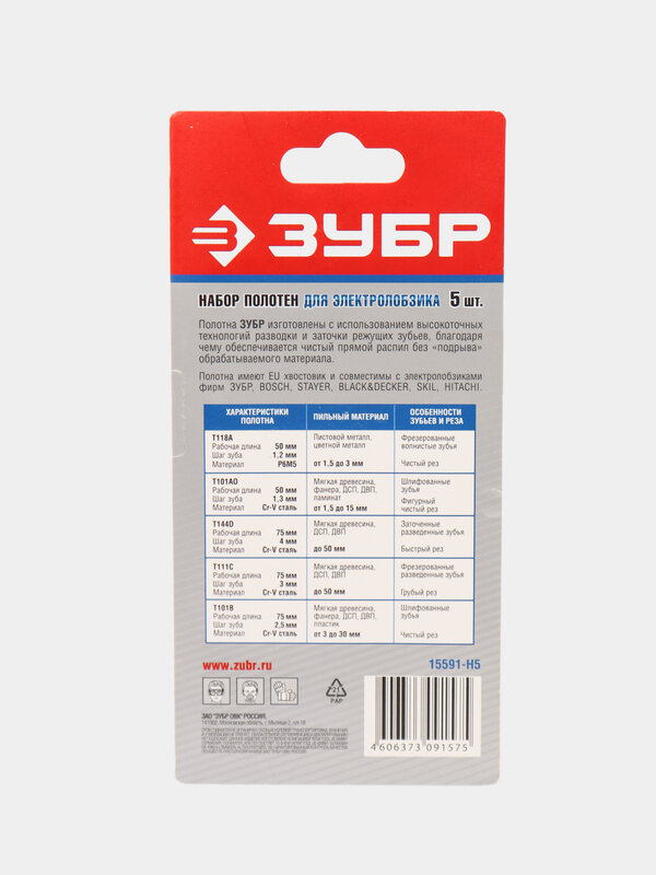 Набор пилок для электролобзика по дереву и металлу ЗУБР 15591-h5