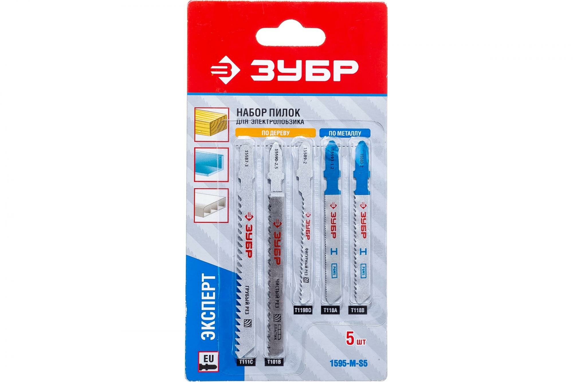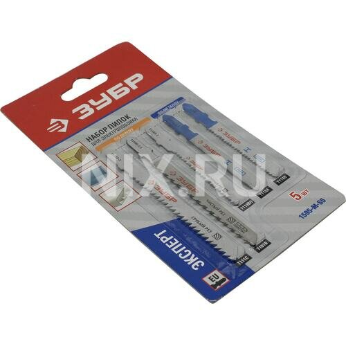| Прочие характеристики и свойства | Сделаны на полностью автоматизированных производственных линиях с применением новейших методов шлифовки, разводки и заточки зубьев.,Термическая закалка полотен обеспечивает им длительный рабочий ресурс и безопасность использования,В комплектацию набора входят наиболее популярные и востребованные типы полотен, которые пригодятся как на строительной площадке, так и при мелких бытовых ремонтах.,Полотна ЗУБР "ЭКСПЕРТ" для электролобзиков имеют увеличенную толщину рабочей части, что даёт повышенную устойчивость к излому и перегибу. Набор полотен применяются на электрических лобзиках при резке массива древесины, многослойной фанеры, ДСП и листового металла.,Полотна применяются на электрическом лобзике при резке тонколистового металла и цветных металы, ДСП, металличеких деталей и заготовок,Материал полотнаHCS (высокоуглеродистая сталь), HSS (быстрорежущая сталь),КомплектацияT119BO, T111C, T118B, T118A, T101B, упаковка блистер |