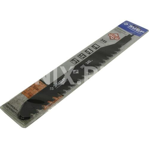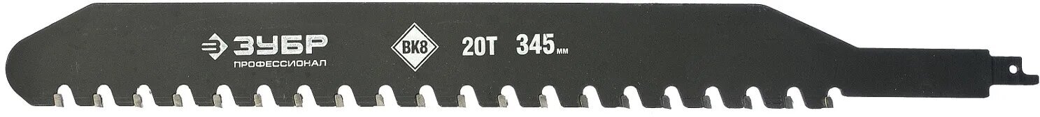 | Прочие характеристики и свойства | Полотна «ЗУБР» серии ПРОФЕССИОНАЛ изготовлены из качественной высокоуглеродистой закалённой стали, что придаёт им дополнительную стойкость к излому и перегибу. Оригинальная технология автоматической пайки режущих элементов обеспечивает их длительный рабочий ресурс при работе с такими материалами как кирпич, пенобетон и гипсокартон. Трехгранная заточка твердосплавных зубьев гарантирует лёгкий и комфортный рез без грубых трещин и сколов. Полотно применяется на сабельной электроножовке мощностью не менее 900 Вт при резке легкого пенобетона, строительного кирпича и гипсокартонных плит. Зубья 20T Хвостовик 1/2" Длина 345 мм |
