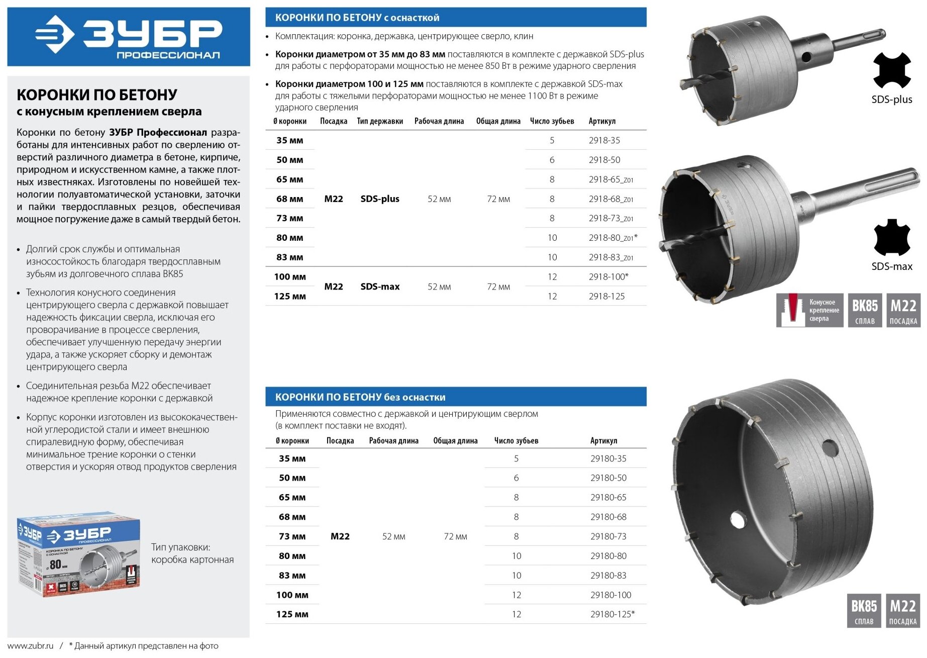 | Комплектация | коронка без оснастки |