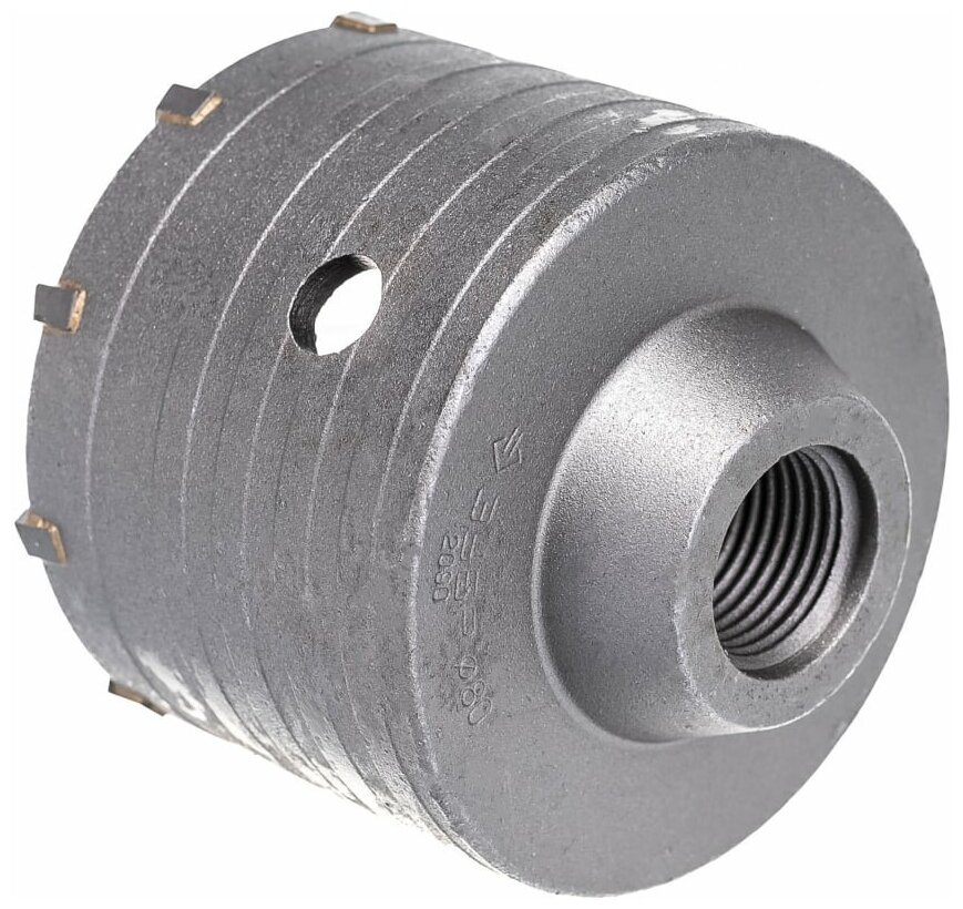 10 твердосплавных резцов марки ВК8. Для сверления отверстий большого диаметра в бетонных, каменных и кирпичных стенах. Буровые коронки имеют резьбу М22 для соединения коронки с державкой. Применяются с перфораторами или дрелями ударного действия мощностью не менее 800 Вт для сверления отверстий большого диаметра в бетонных, каменных и кирпичных стенах при выполнении электромонтажных работ. Диаметр: 80 мм. Количество резцов: 10 штук.