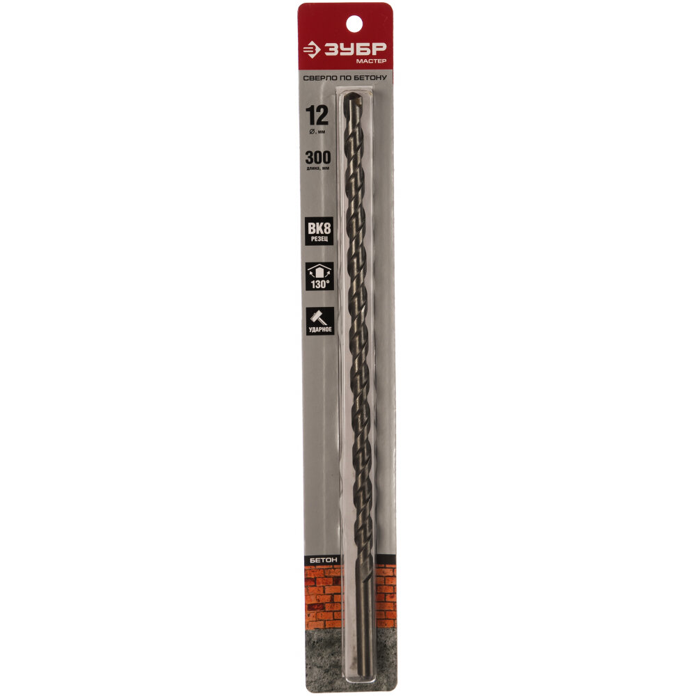 Сверло Зубр серии "Профи" используется совместно с дрелями для ударного сверления конструкций из бетона, кирпича, камня, плотных известняков. На наконечник сверла напаяна твердосплавная пластина марки ВК8, что позволяет существенно повысить скорость обработки и рабочий ресурс сверла. П-образная форма спирали обеспечивает эффективное и быстрое удаление отходов сверления из отверстия. Угол заточки при вершине 130 о. Сверло имеет цилиндрический хвостовик.