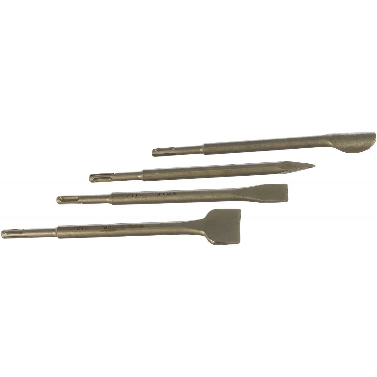 | Состав комплекта | Зубило пикообразное - 1 шт., Зубило плоское узкое - 1 шт., Зубило плоское широкое - 1 шт., Зубило-штробер полукруглое - 1 шт. |