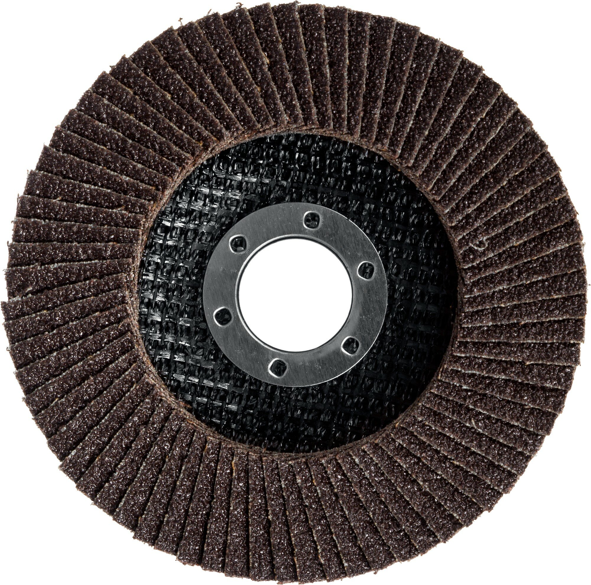 Круг лепестковый торцевой абразивный "Луга" для шлифования. Электростатический способ нанесения абразивного зерна обеспечивает его равномерное распределение по всей рабочей поверхности лепестка. Усиленная стекловолоконная подложка обладает повышенной прочностью и защищает круг от разрыва.