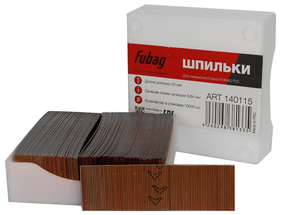 Шпильки FUBAG 140115 предназначены для шпилькозабивного пневмостеплера FUBAG Р25 и применяются в отделочных работах для надежного и незаметного крепления наличников, штапиков рам, элементов декора.