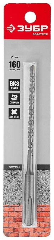 ЗУБР , для перфоратора, применяется при сверлении отверстий в бетоне, граните, кирпичной кладке, камне и твердых известняках. Динамичный наконечник бура из твердого сплава ВК8 в форме зубила обеспечивает быстрое вхождение в материал. Спираль 4S с усиленным сердечником обеспечивает оптимальную устойчивость бура к излому.