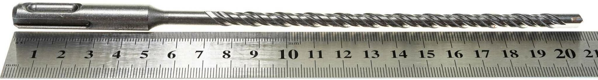 - Наконечник бура из твердого сплава ВК8 в форме зубила обеспечивает быстрое вхождение в материал и быстро отводит шлам в спираль