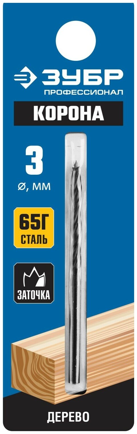 Сверла по дереву Зубр, спиральные с М-образной заточкой, серия "Корона" ( 29421-***-** ) Сверло по дереву спиральное, выполнено с М-образной заточкой в виде трезубца. Оснащено конусным центром и подрезателями. Изготовлено из качественной углеродистой стали, парооксидированная поверхность защищает металл от коррозии. У сверла шлифованный цилиндрический хвостовик. Предназначено для сверления отверстий разного диаметра вдоль и поперек волокон в древесине различных пород, а также в клеевых и фанерных щитах.