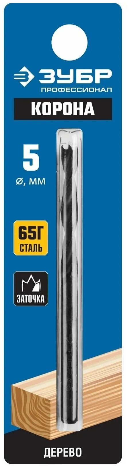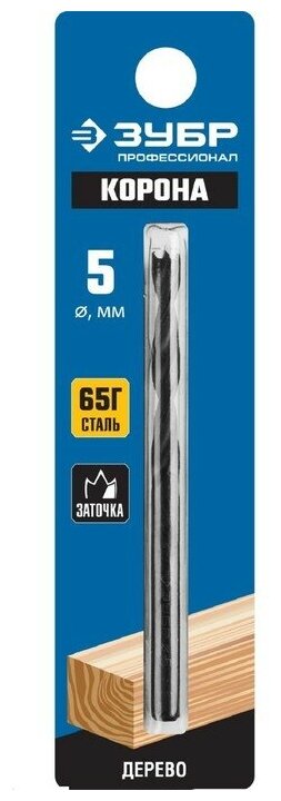 Сверла по дереву Зубр, спиральные с М-образной заточкой, серия "Корона" ( ) Сверло по дереву спиральное, выполнено с М-образной заточкой в виде трезубца. Оснащено конусным центром и подрезателями. Изготовлено из качественной углеродистой стали, парооксидированная поверхность защищает металл от коррозии. У сверла шлифованный цилиндрический хвостовик. Предназначено для сверления отверстий разного диаметра вдоль и поперек волокон в древесине различных пород, а также в клеевых и фанерных щитах.