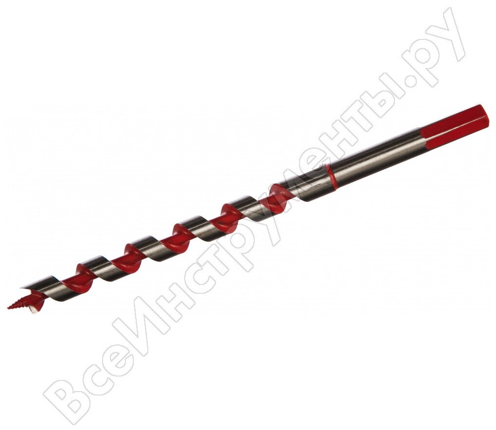 | Прочие особенности и свойства | Оптимально для сверления глубоких отверстий в твердой и мягкой древесине, строительном брусе, клееных щитах и прочих древесных материалах, - Центрирующее острие разработано для производительного сверления - Шлифованная спираль для максимальной эффективности сверления - Шестигранный хвостовик предотвращает проворачивание сверла в патроне., -Материал: Сталь 45 , -Вершина: Винтообразное острие , -Тип спирали |