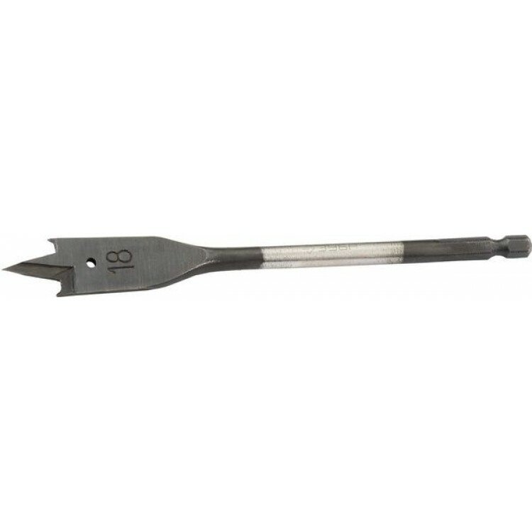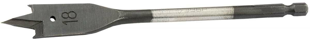 Перовое сверло по дереву ЗУБР мастер из инструментальной стали с боковыми подрезателями и шестигранным хвостовиком. Используется с дрелями в качестве сменной начадки, предназначено для работ с жёсткой и мягкой древесиной. Диаметр сверла 18 мм, длина - 152 мм.