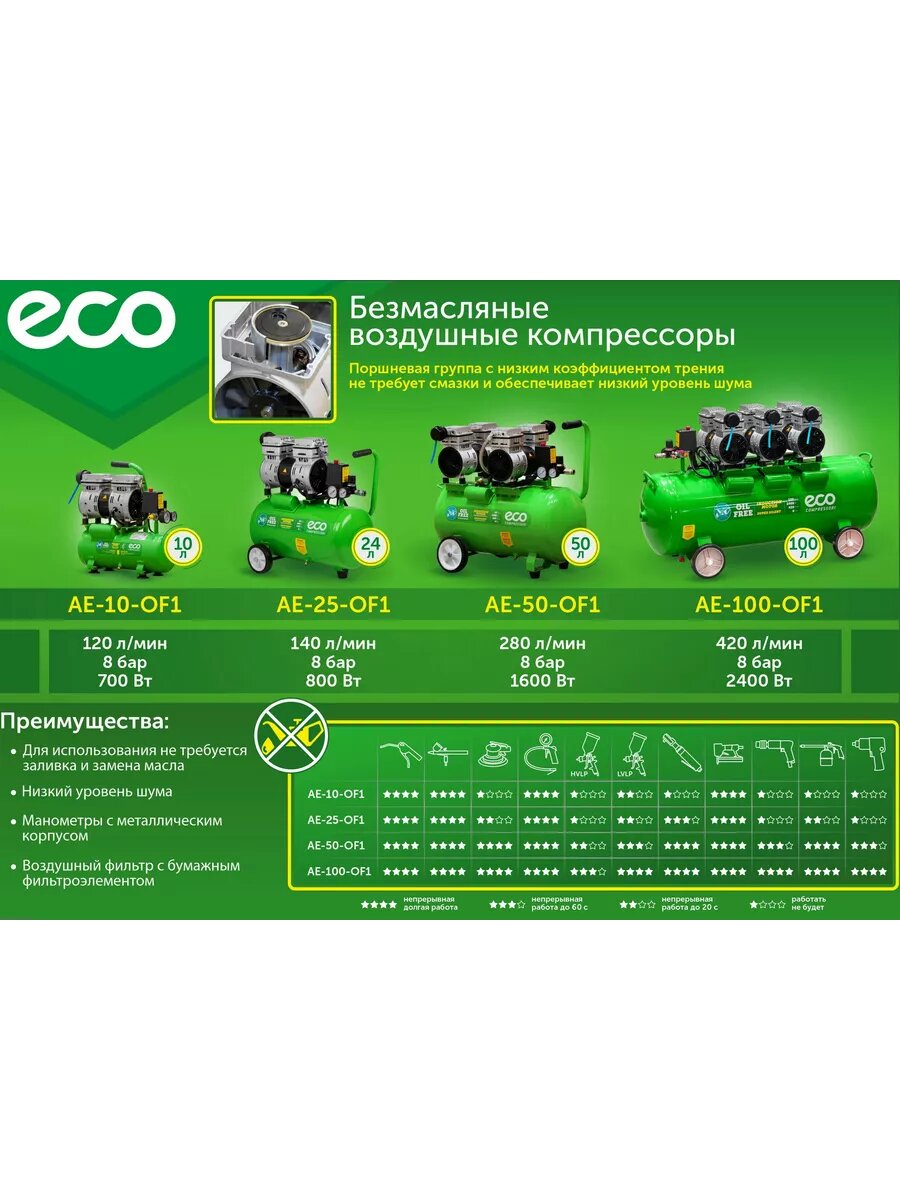 Компрессор безмасляный Eco EC2610-1 AE-100-OF1