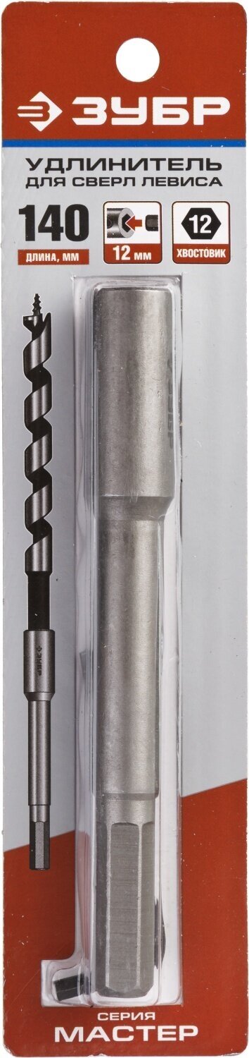 Удлинитель для сверла Левиса с хвостовиком 12мм, ЗУБР Мастер , HEX 12,5, L=300мм