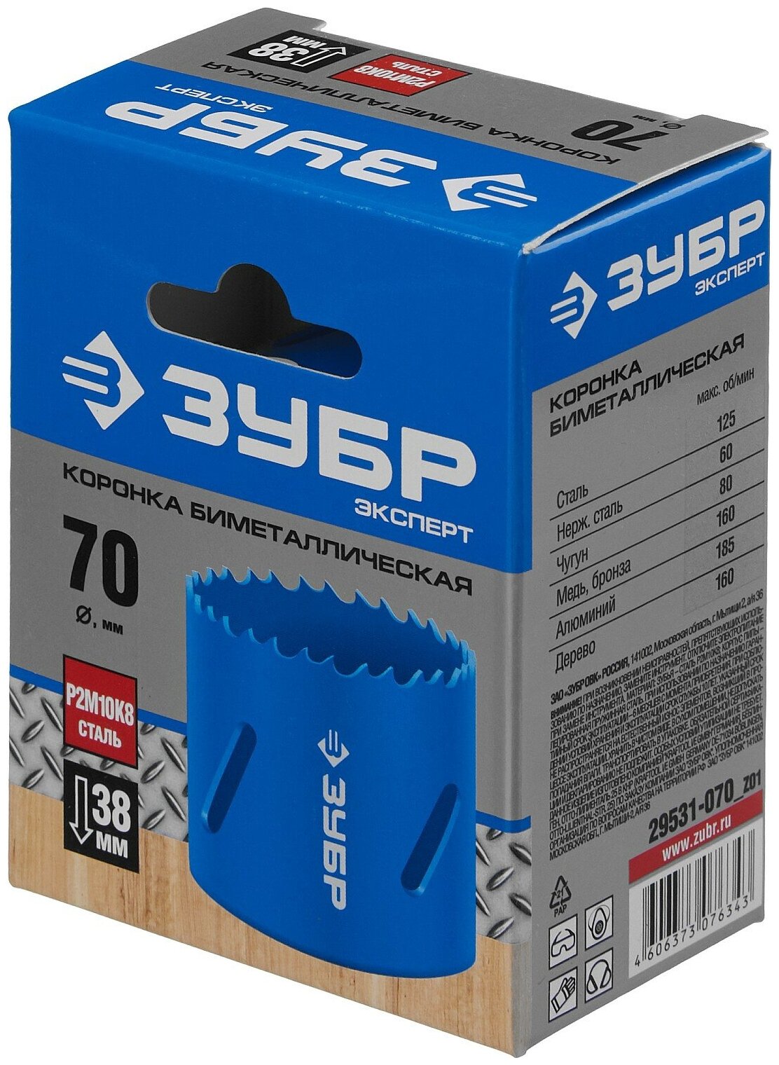 Коронка биметаллическая ЗУБР 29531-070_z01