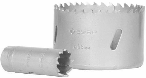 Биметаллическая коронка Зубр специально созданы для реализации самых сложных задач в строительстве и производстве при сверлении металла, дерева, ДСП, гипсокартона и твёрдых пластмасс. Особенности и преимущества: Универсальные би-металлические кольцевые пилы ЗУБР имеют разведённые закалённые зубья повышенной твёрдости с прогрессивным расположением. Благодаря чему гарантируется аккуратное чистовое сверление без трещин и сколов.