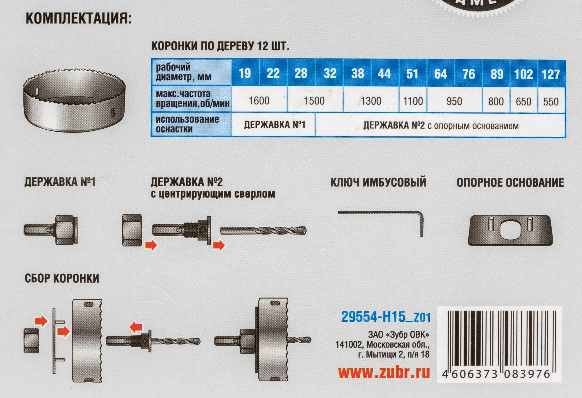 Набор коронок ЗУБР 29554-h15_z01