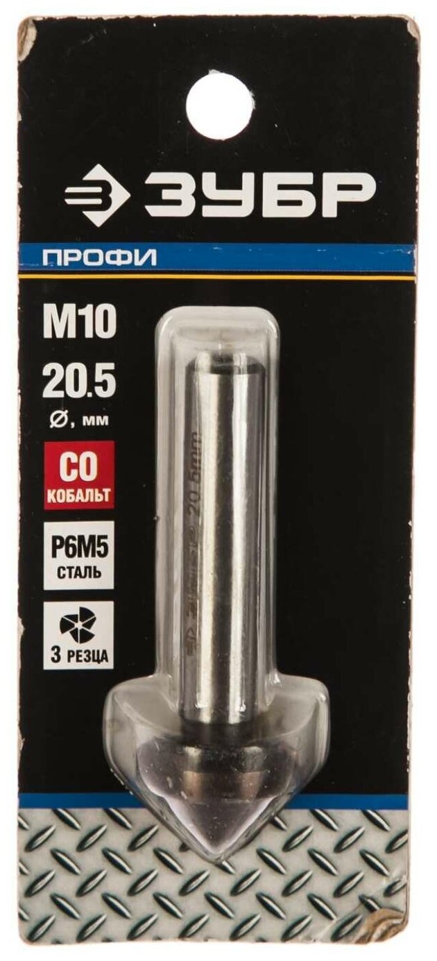 | Прочие особенности и свойства | Изготовлен из быстрорежущей стали Р6М5. Три острых и прочных кромки обеспечивают легкость зенкования и предотвращают нарушение круговой геометрии. |