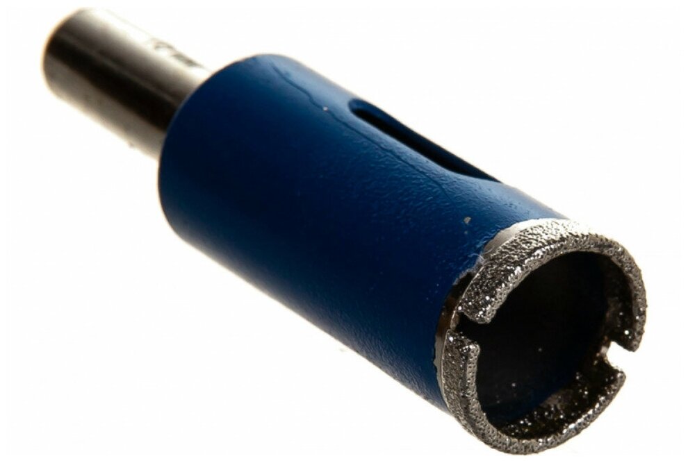 Сверло алмазное, трубчатое по кафелю и керамике. Равномерное распределение режущих алмазных элементов обеспечивает аккуратное сверление материала без трещин и сколов. Наилучший результат достигается на малых оборотах вращения (1000-1500 об/мин). Корпус - углеродистая сталь. Зерно Р60. Сверла трубчатые алмазные предназначены для сверления отверстий в керамической и кафельной плитке при обязательном водном охлаждении.