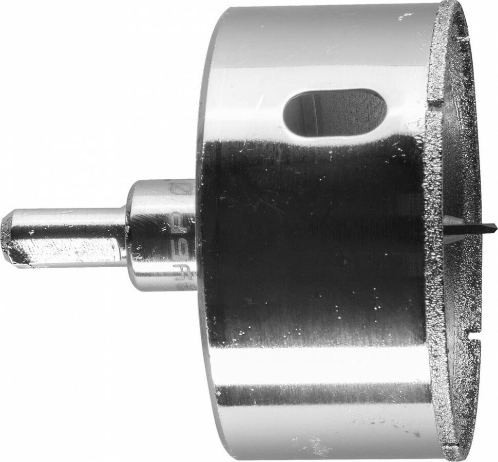 Алмазная коронка по керамограниту и стеклу для дрелей и шуруповертов Зубр позволяет быстро просверливать отверстия даже в самых хрупких материалах. При выполнении работ обязательно обеспечивать охлаждение водой.