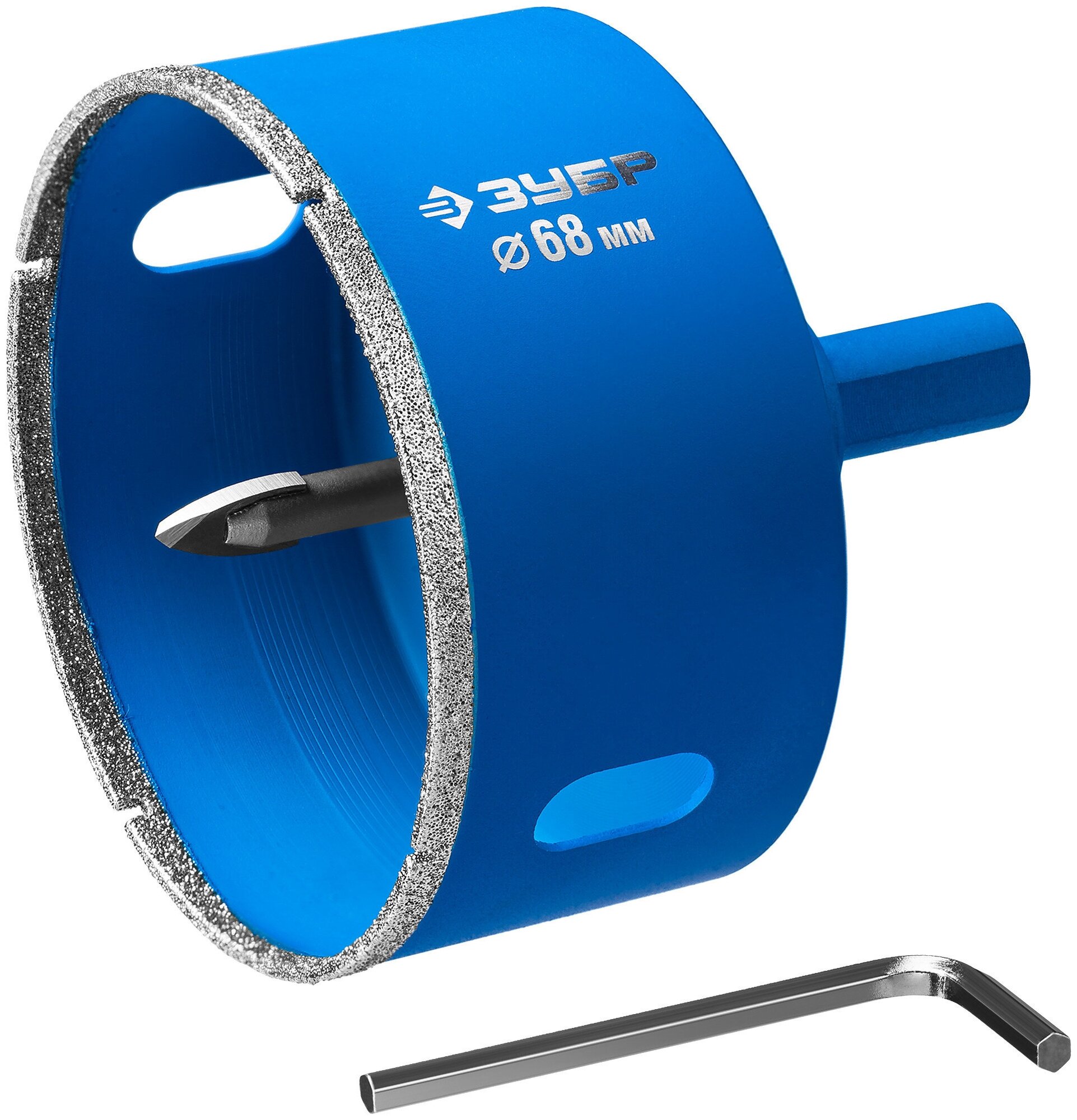| Прочие особенности и свойства | Предназначена для сверления отверстий в керамической и кафельной плитке диаметром до 120 мм при обязательном водяном охлаждении.,,Равномерное распределение зерна на поверхности рабочей части обеспечивает аккуратное сверление материала без трещин и сколов.,,Центрующее сверло исключает возможность смещения инструмента во время работы. |