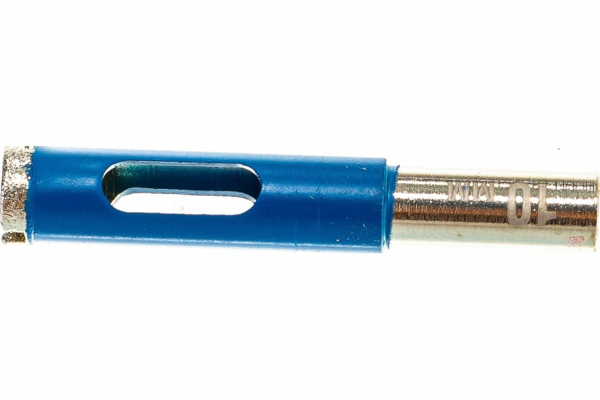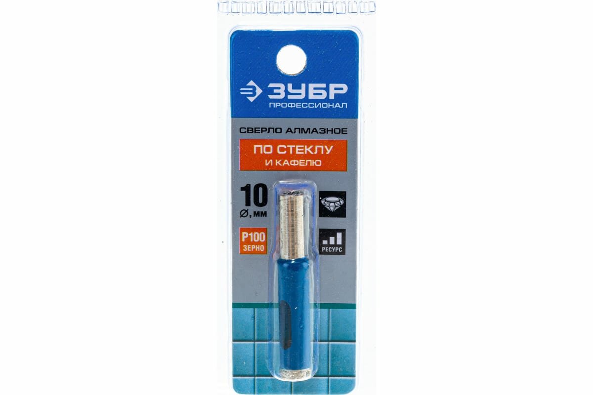 Сверло по керамике и стеклу ЗУБР Профи -применяется для просверливания отверстий в керамической плитке, стеклянных поверхностях и конструкциях. Трубчатое сверло с алмазным напылением, диаметр сверла 10 миллиметров, размер алмазного зерна на режущей кромке Р100, хвостовик сверла цилиндрический. Поставляется в индивидуальной упаковке блистере.