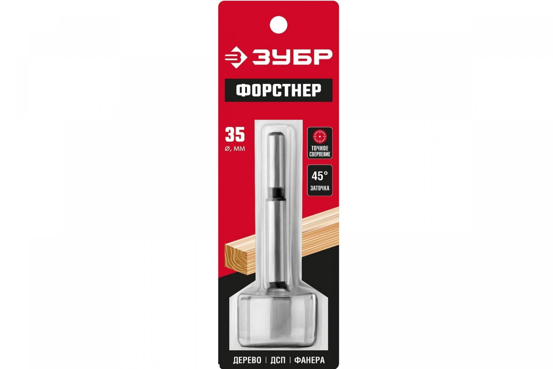 Сверло Форстнера ЗУБР применяется для обработки твердых и мягких пород дерева, при сверлении глухих отверстий большого диаметра, главная особенность которых гладкие края и плоское основание. Оснастка идеально подходит для проделывания сквозных и глухих отверстий под петли. Одной из особенностей "Форстнерского" сверла является отшлифованный хвостовик цилиндрической формы с проточкой, благодаря которому достигается максимально точная работа.