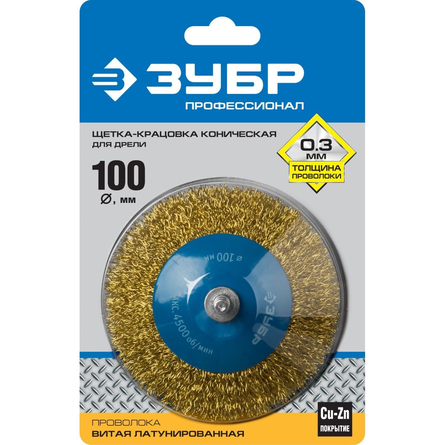 Кордщетка ЗУБР ЭКСПЕРТ коническая для дрели витая сталь 0.3мм 100мм